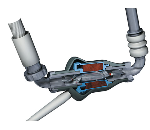 Although the pump is within the body, a thin tube (or driveline) exits the skin over the abdomen to connect the internal pump to an external controller.